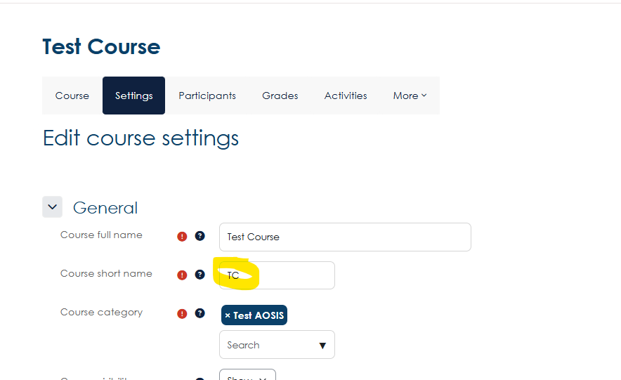 - Go into the course you want to load users, and open the settings and take the shortname.