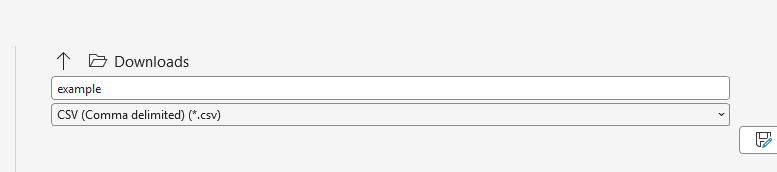 - Then you save the file as CSV